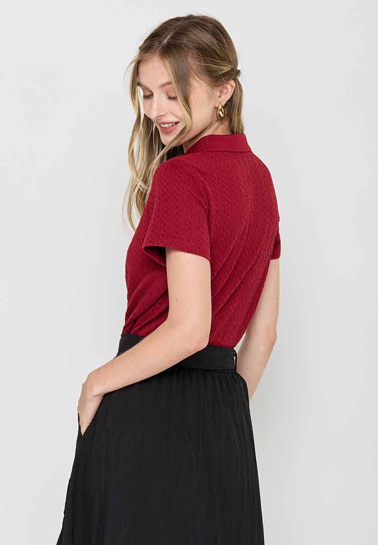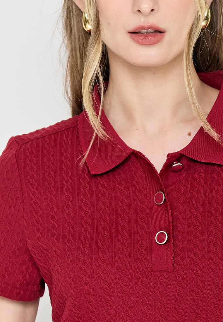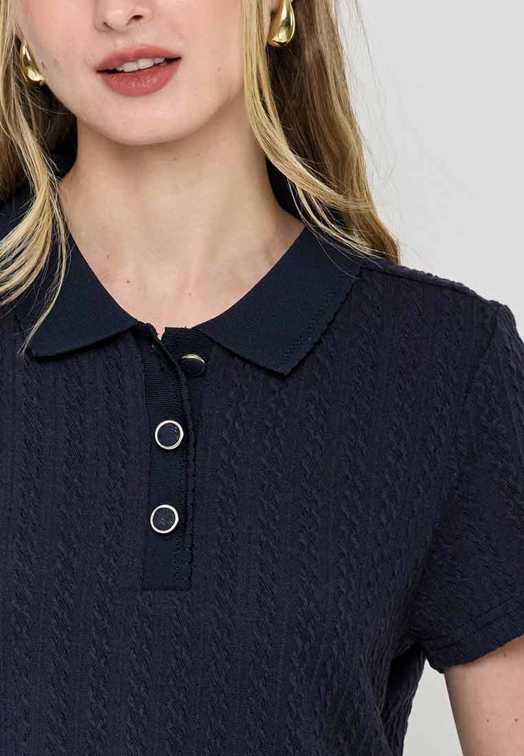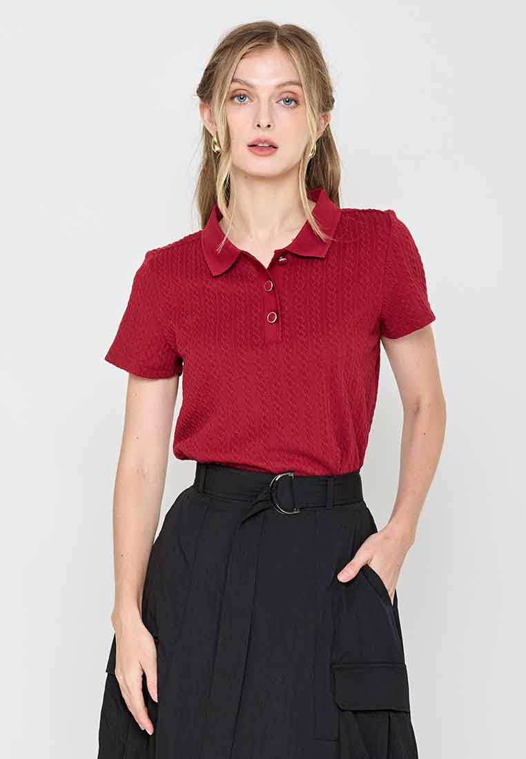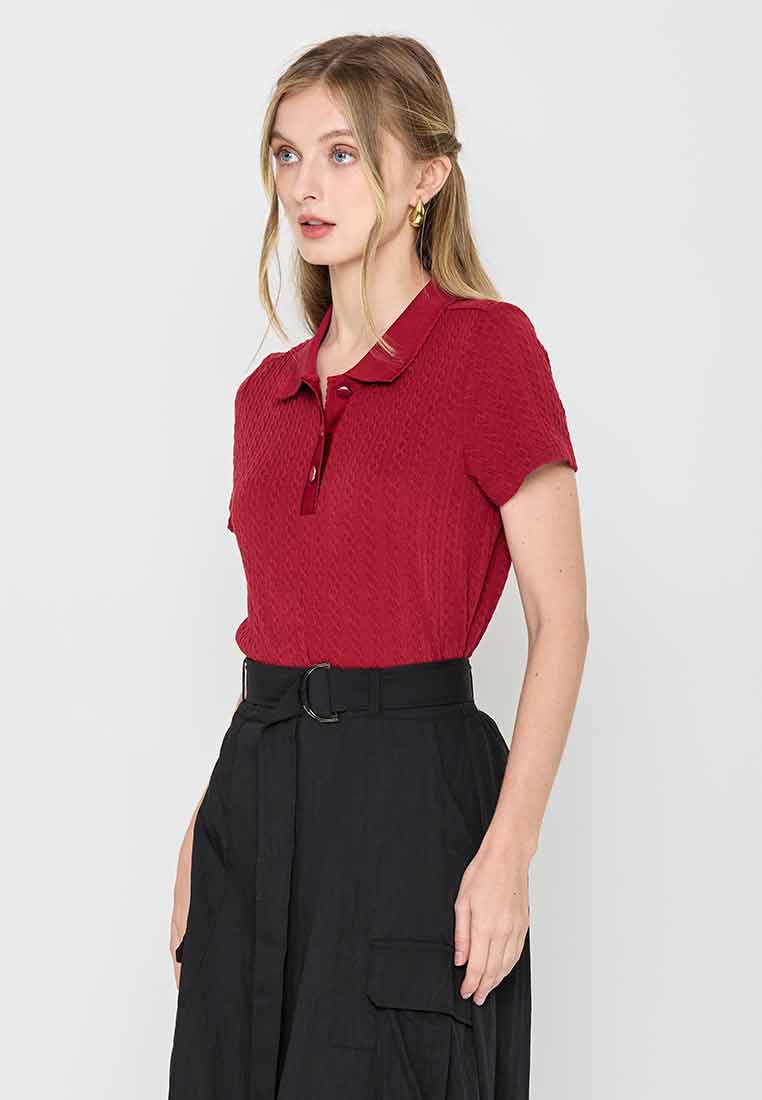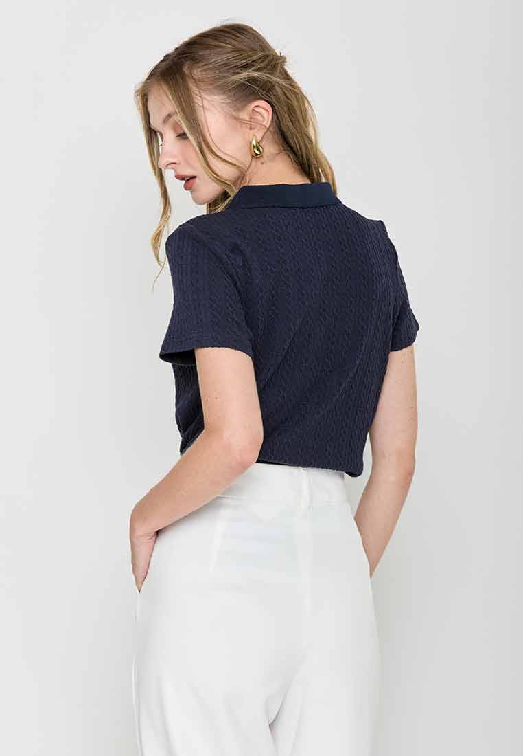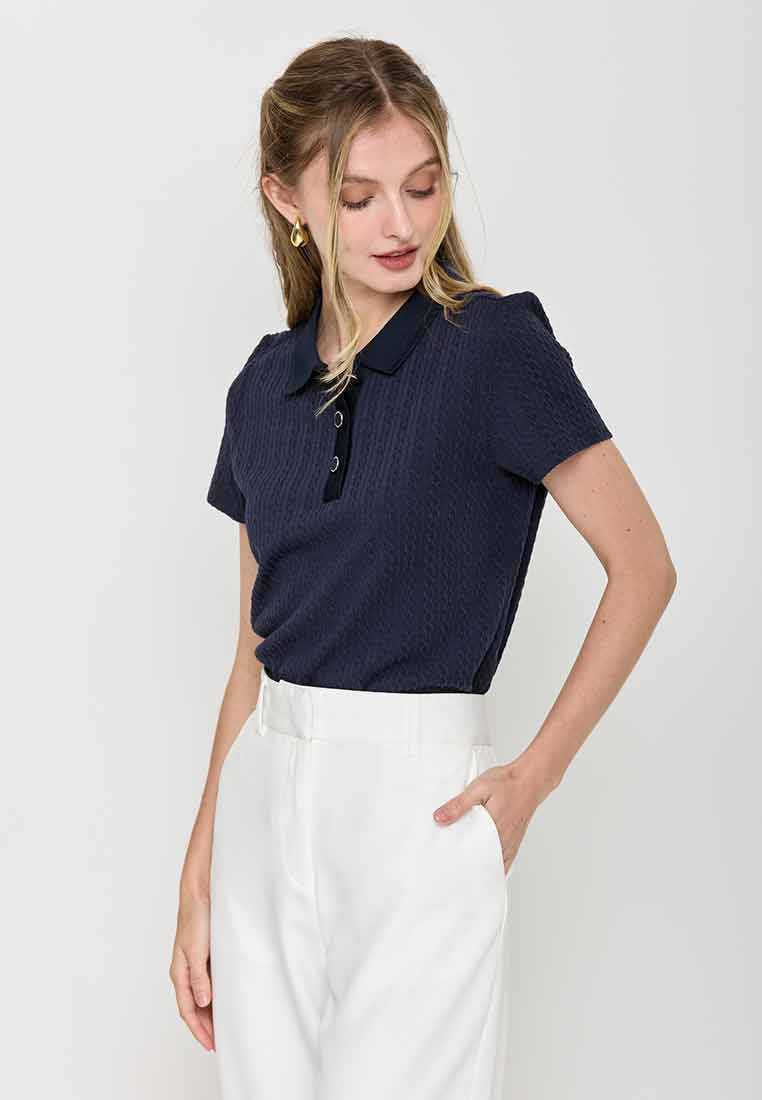 Paperdolls Milena Collared Textured Knit Top with Button Front Opening
