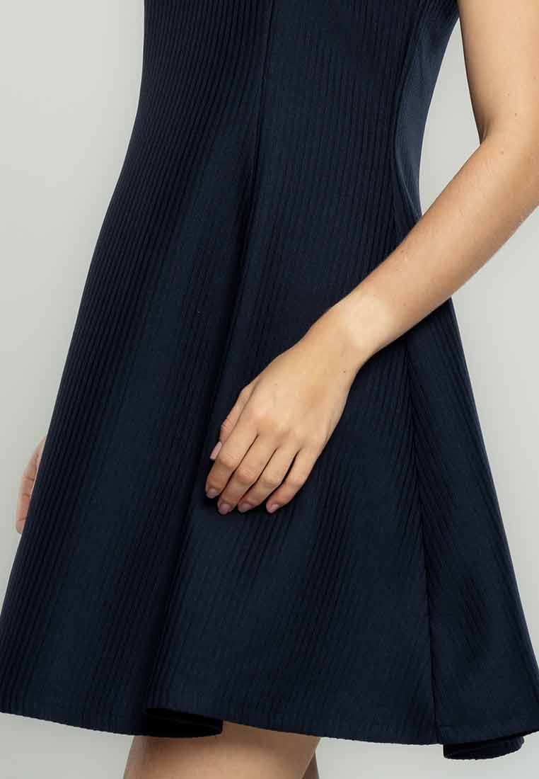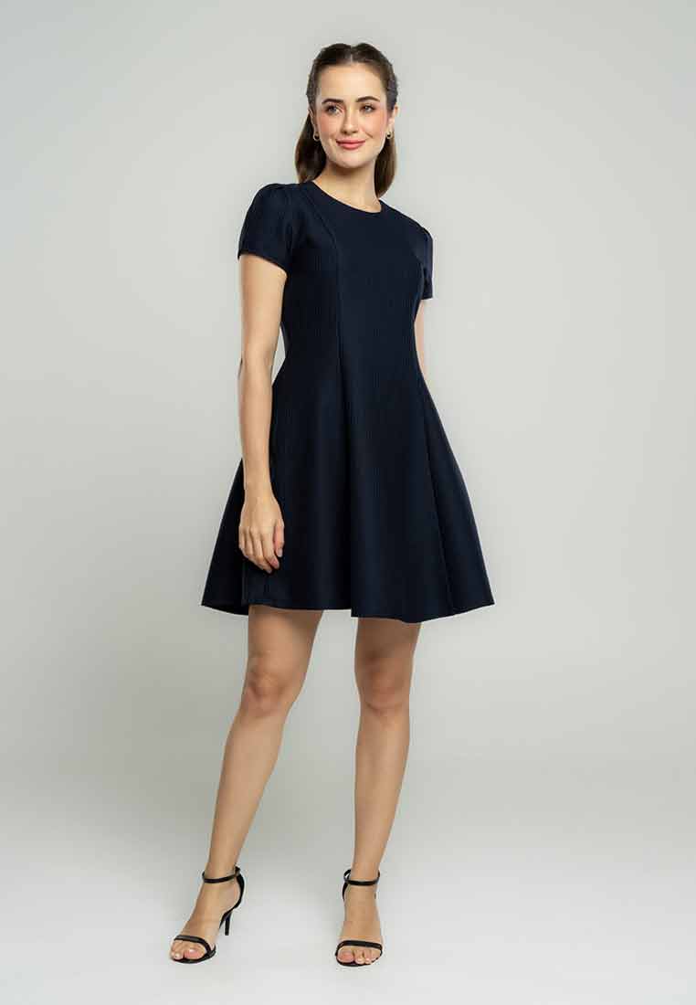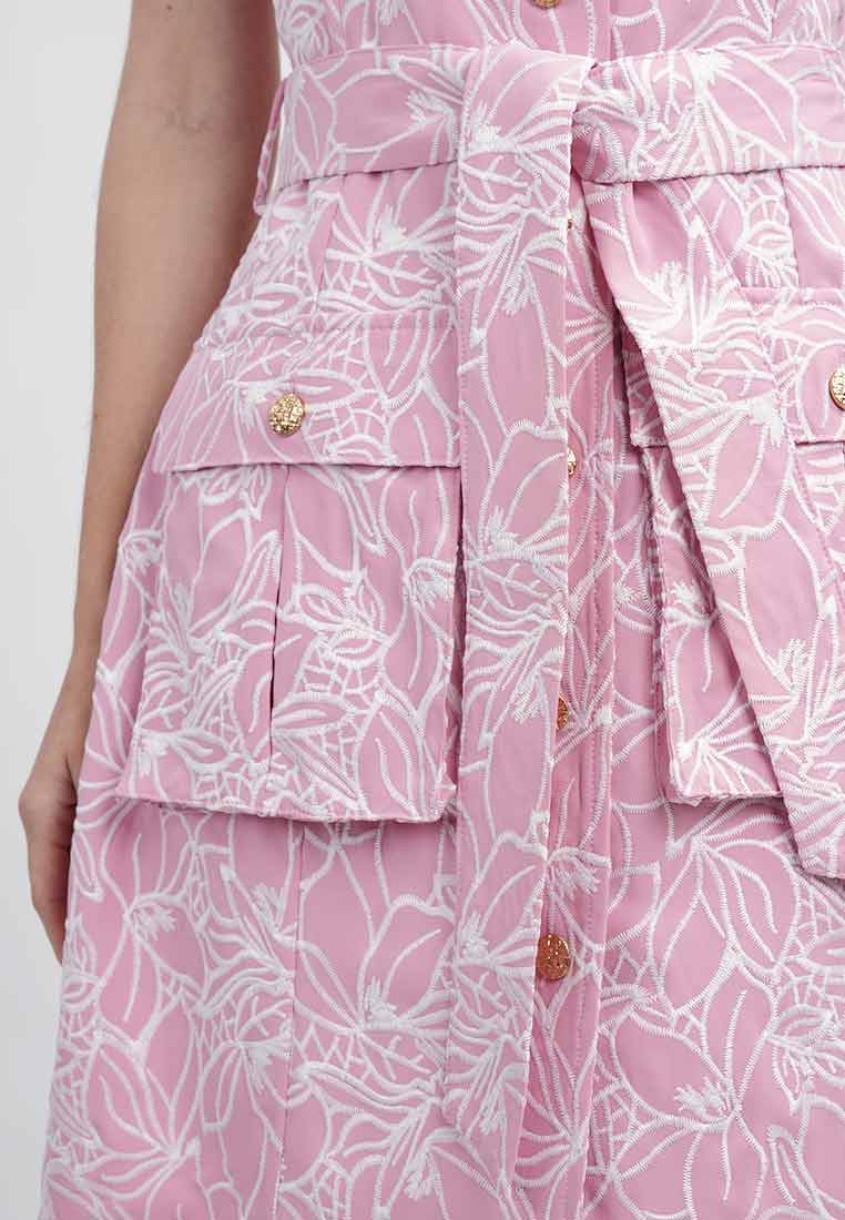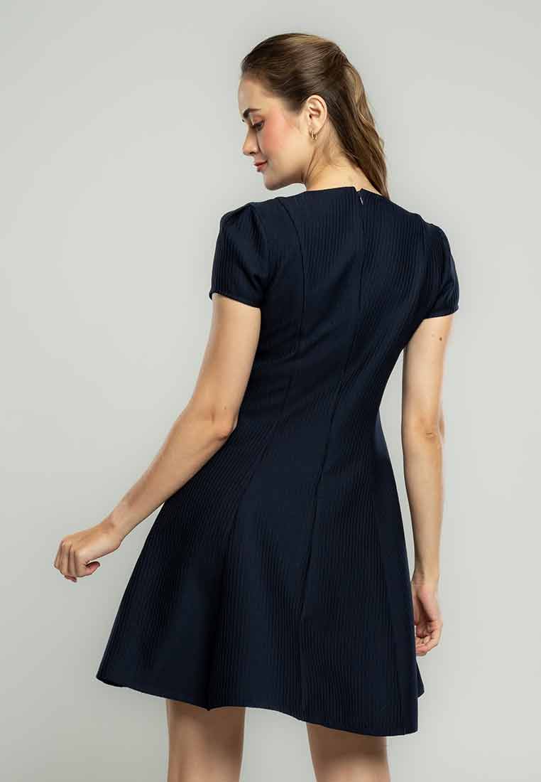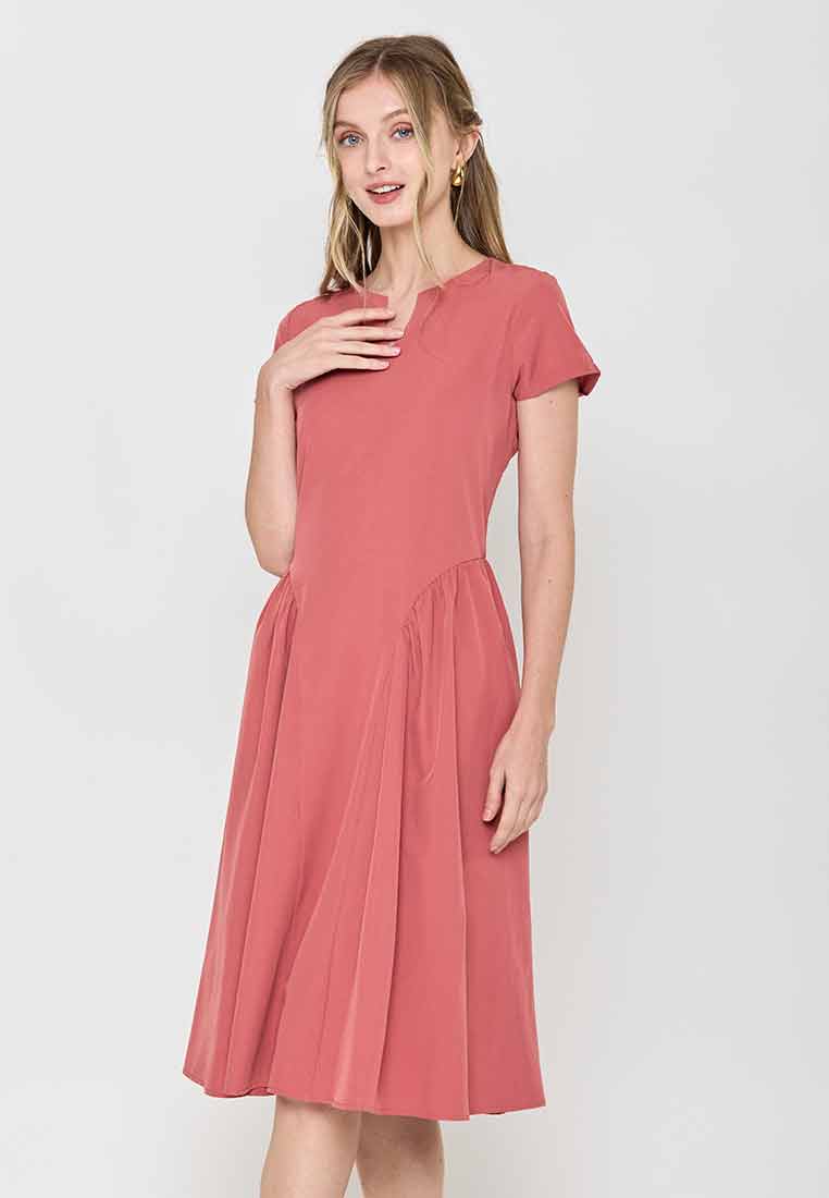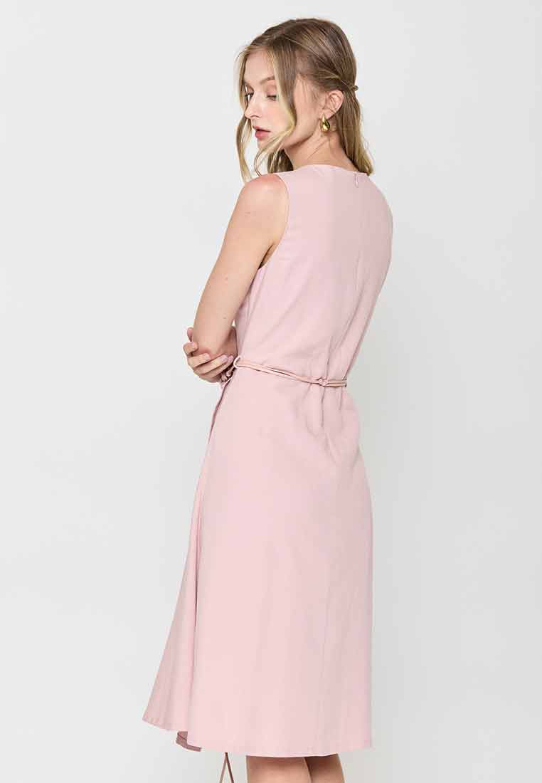 Fit - Fitted bodice, defined waist with belt, A-line skirt; Midi length