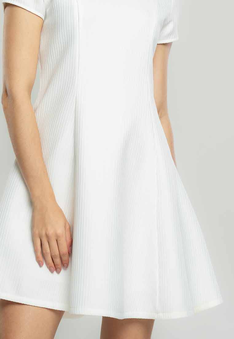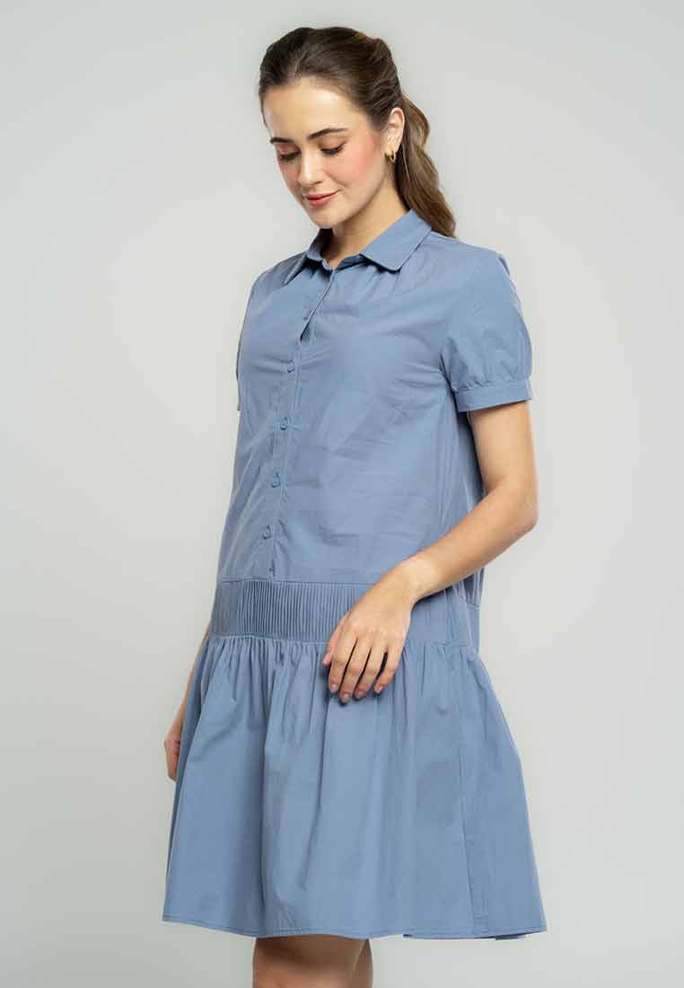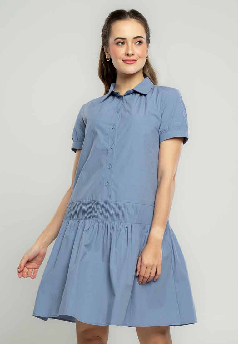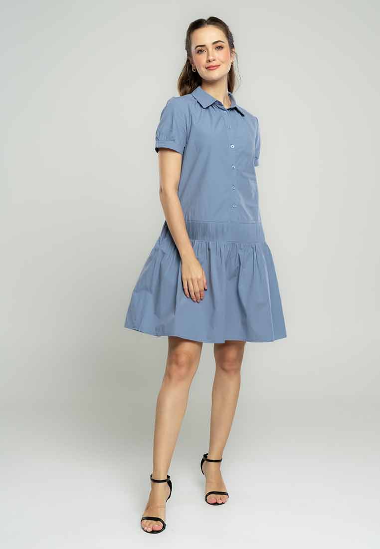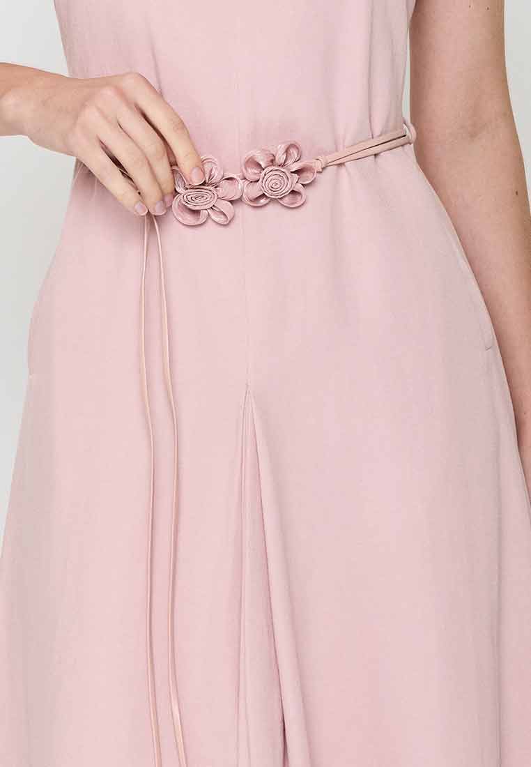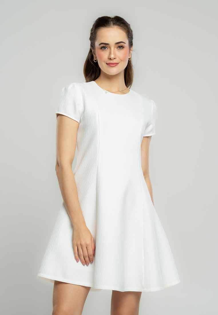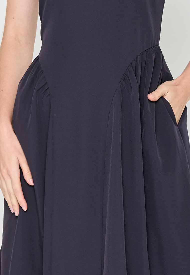 Fit - Fitted bodice, defined waist with belt, A-line skirt; Midi length