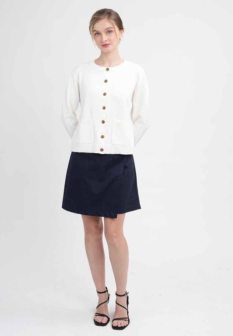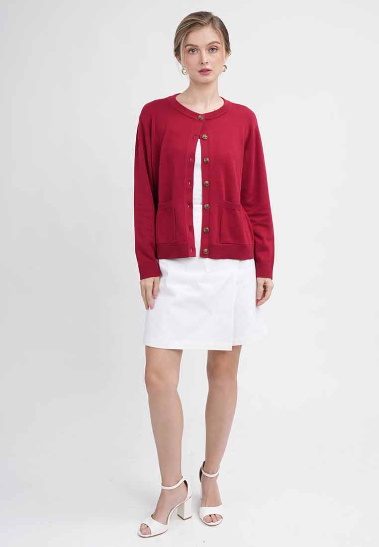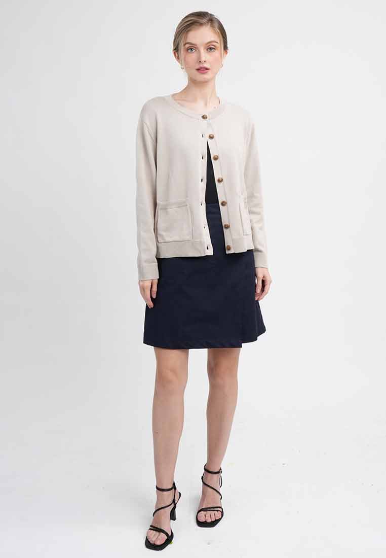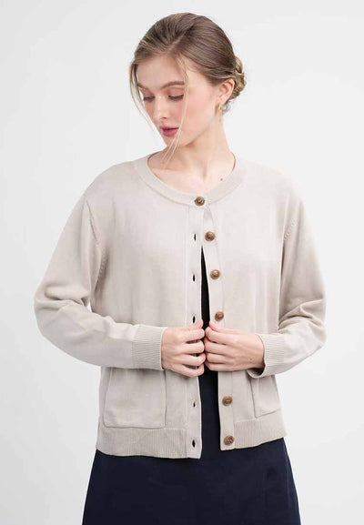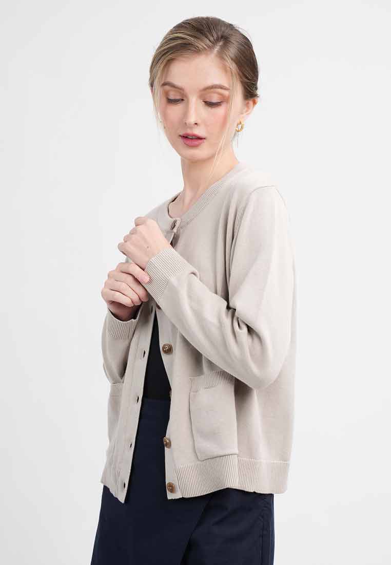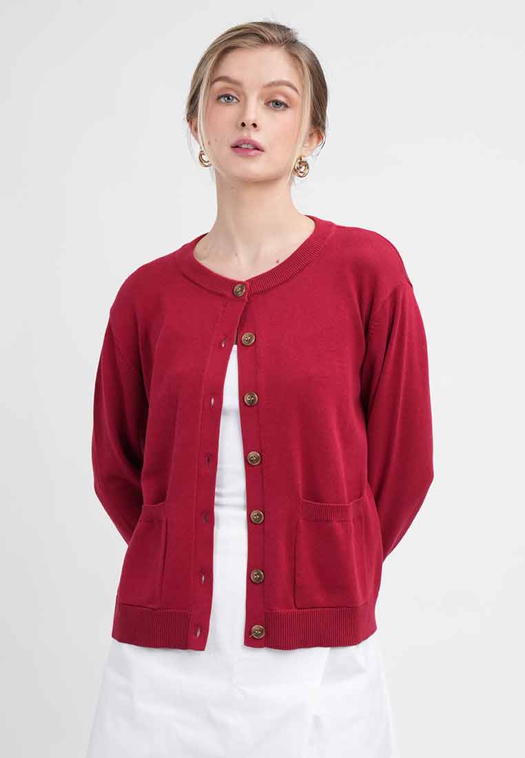 PAPERDOLLS LIANA ESSENTIAL KNIT CREWNECK CARDIGAN WITH POCKETS