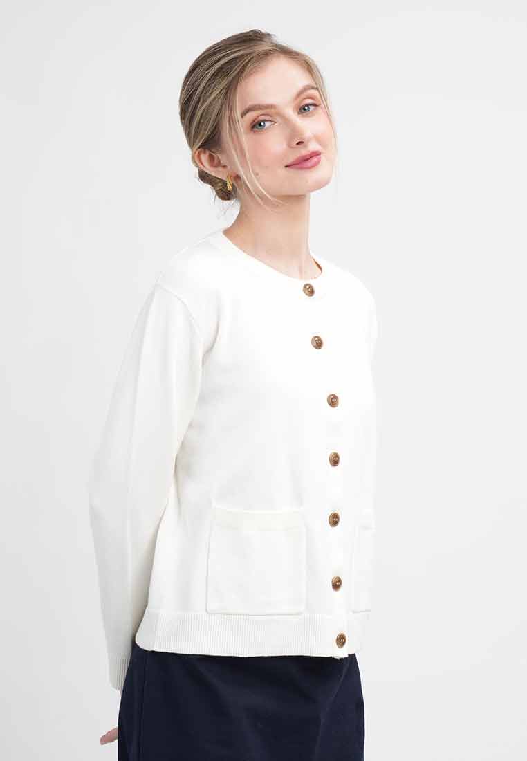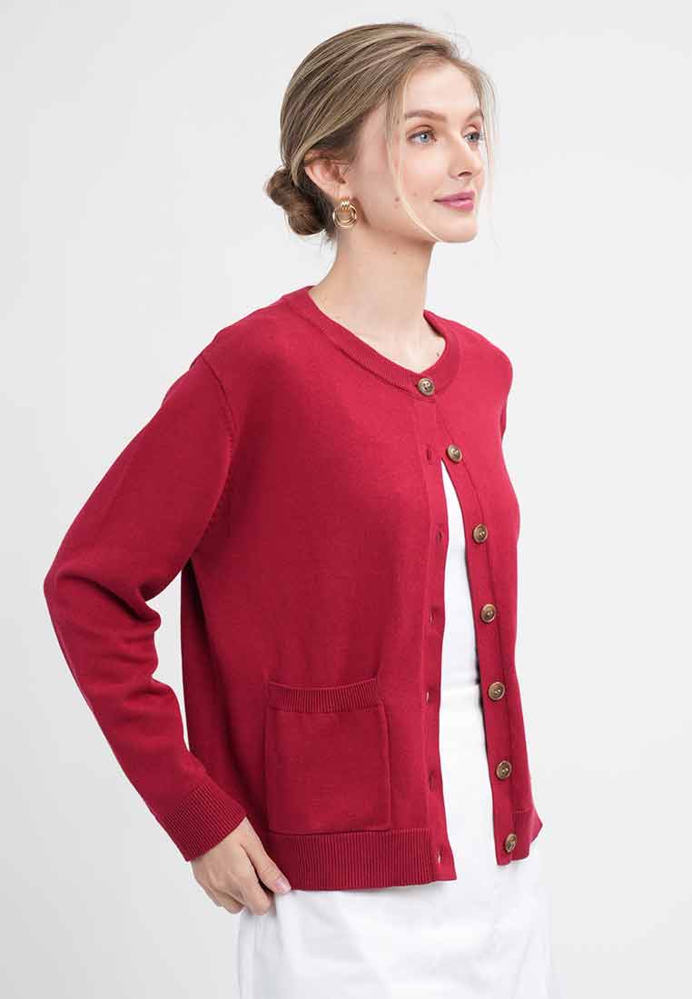 ✅ Why You'll Love It: It is the ultimate classic staple. The inclusion of functional patch pockets and the charming wood-look buttons add character to this comfortable knit, making it a stylish and practical choice for all-day wear.