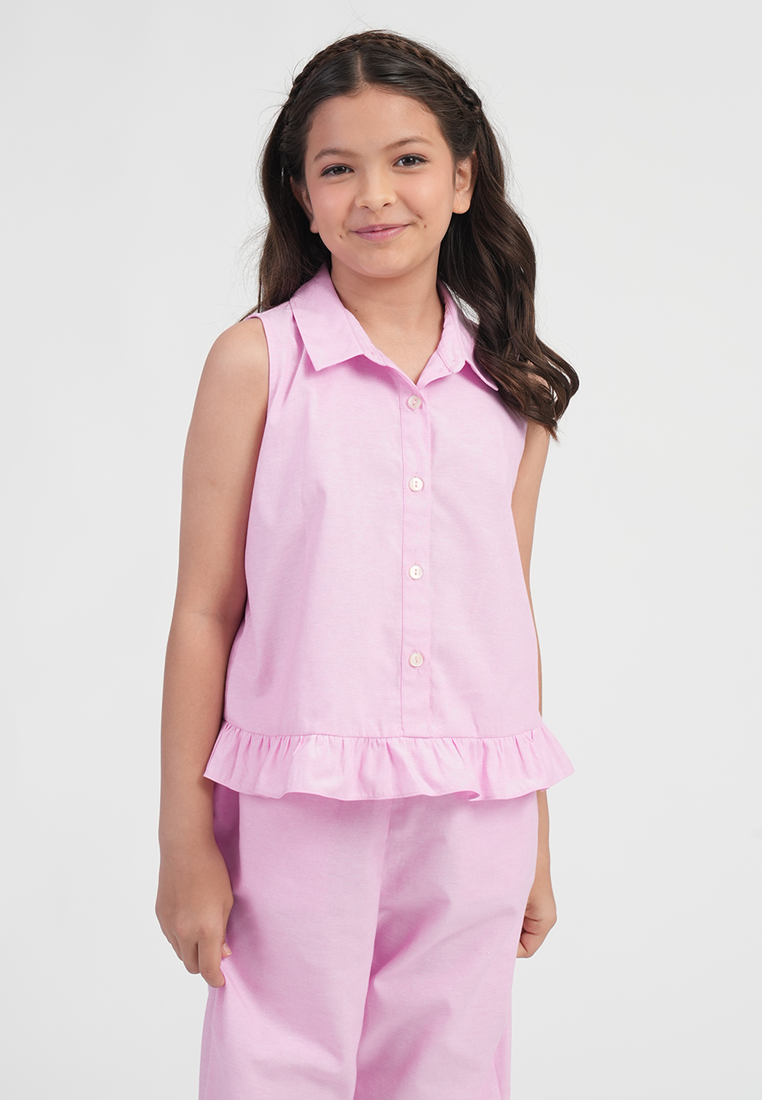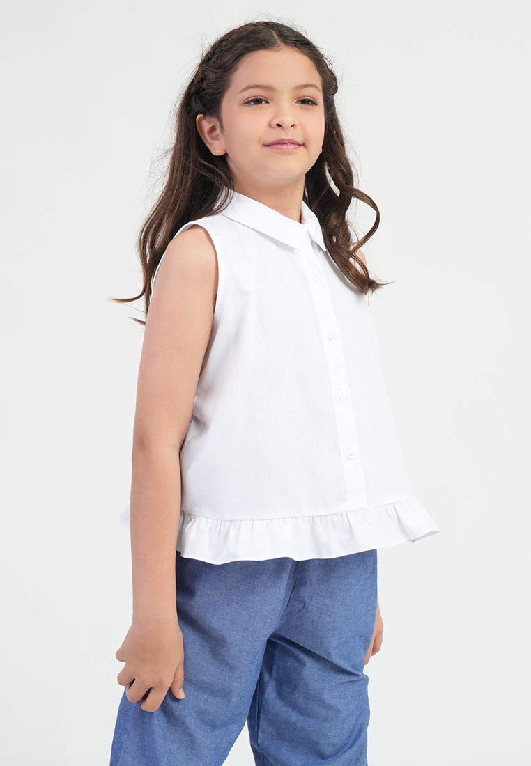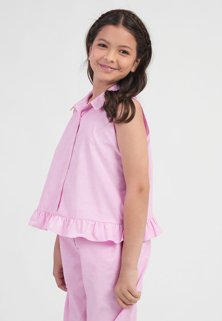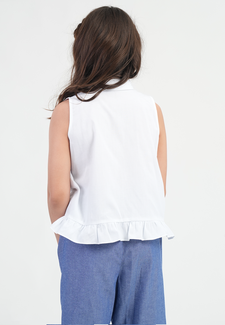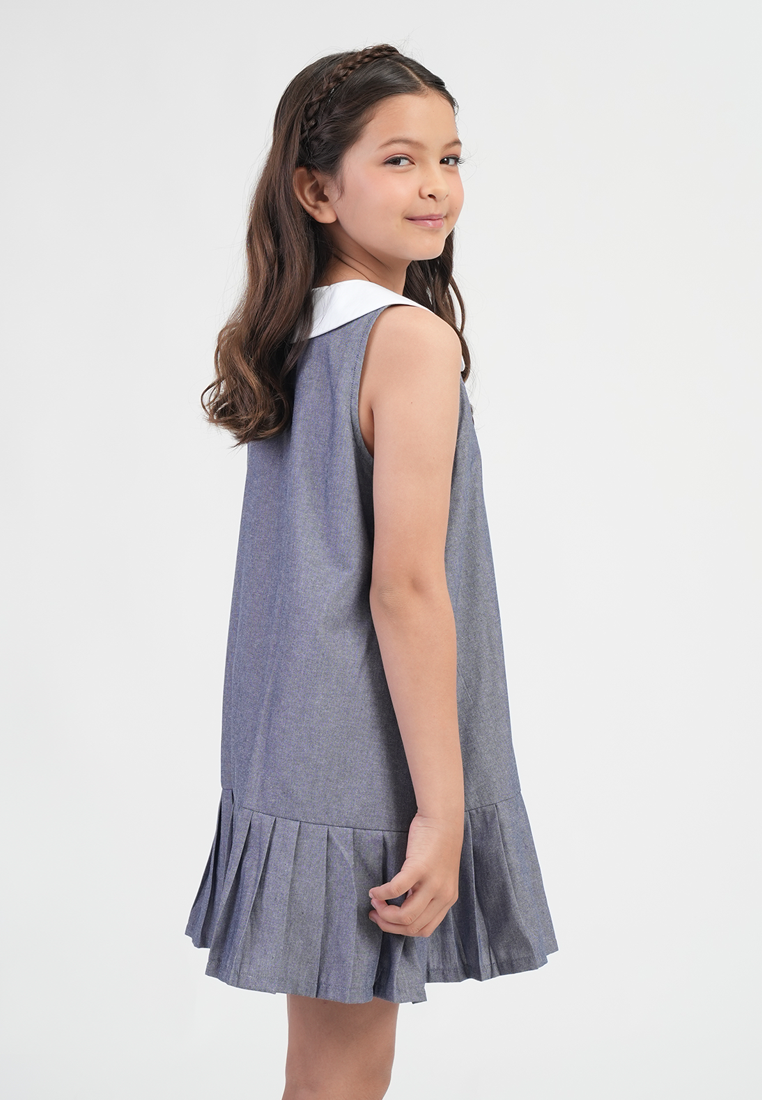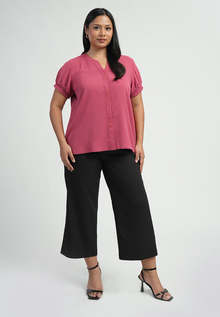 Details - V-neckline with ruffle collar detail, short sleeves, button-down front bodice, and a tiered hemline
