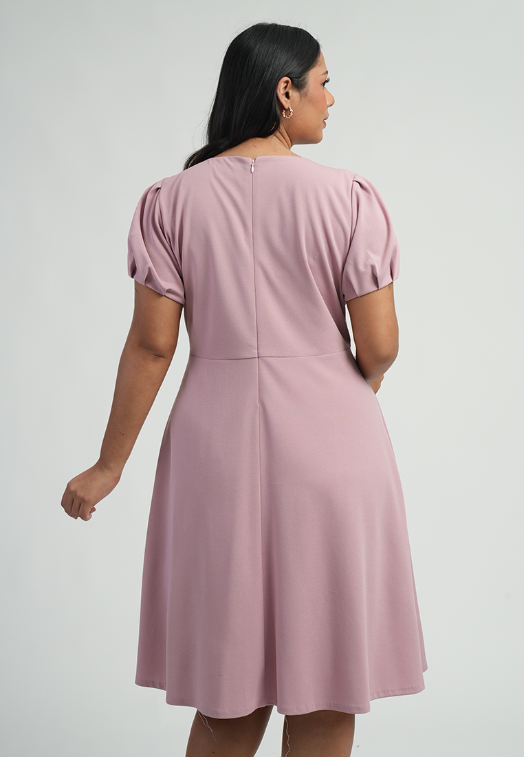 Design - Solid-colored dress featuring an all-over intricate, raised floral jacquard texture