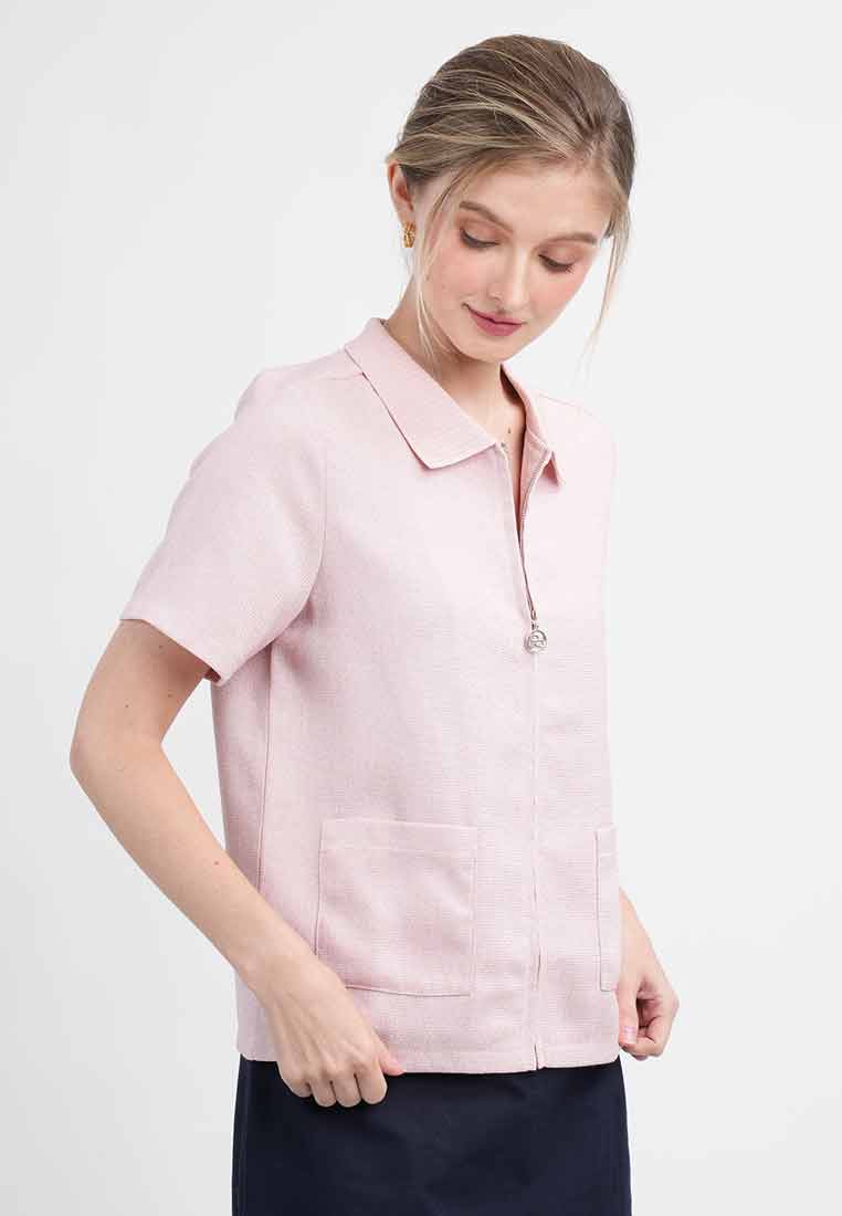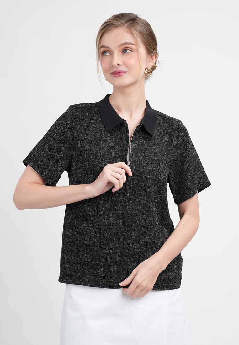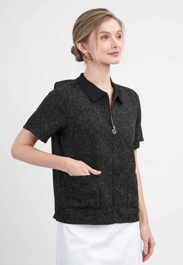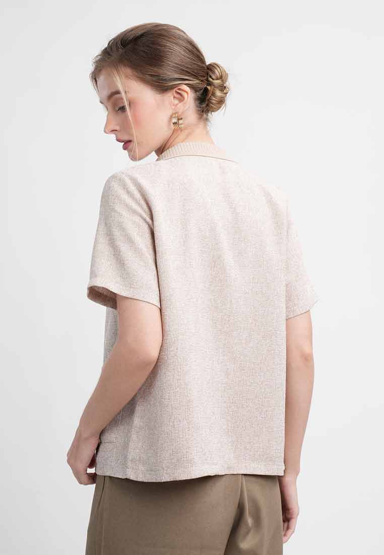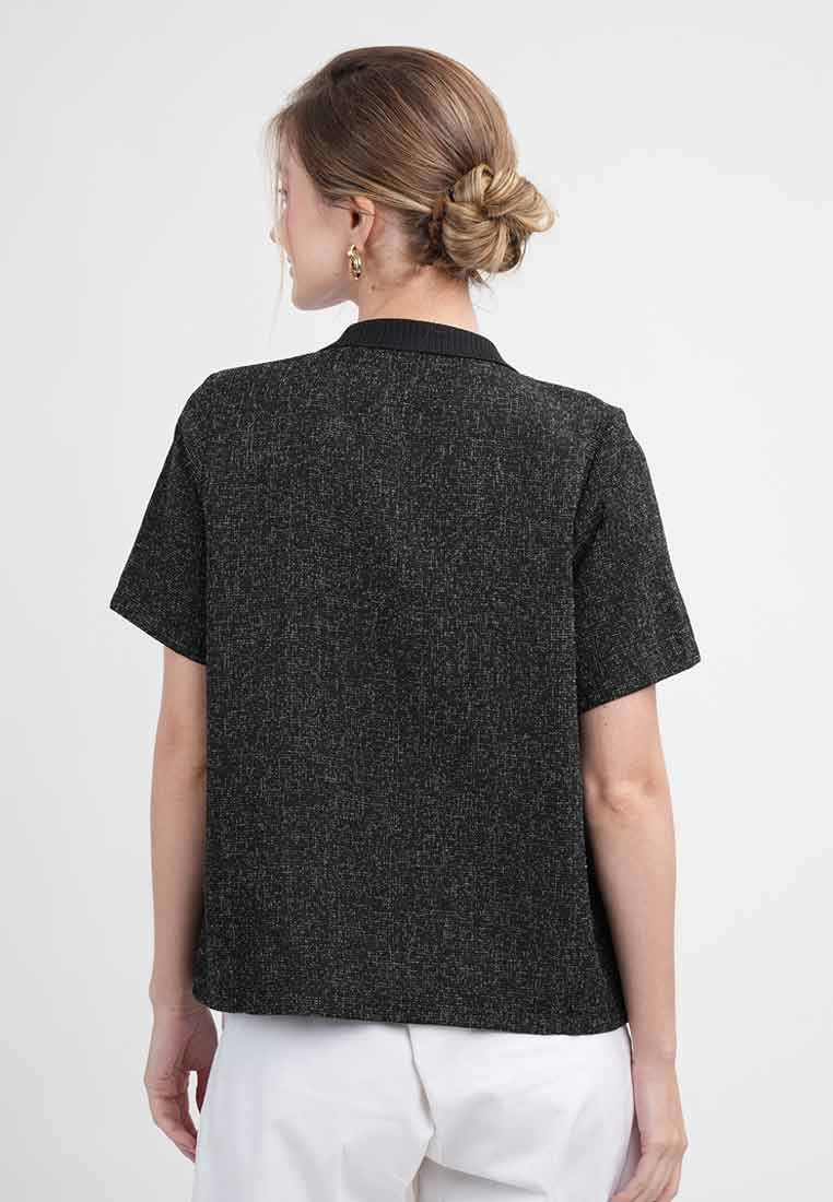 Design - Short-sleeved, collared top in a structured, textured fabric.