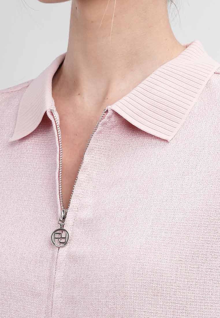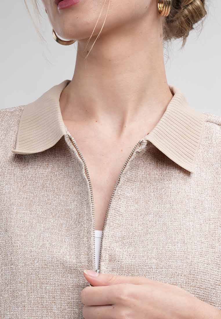PAPERDOLLS AMARA KNITWEAR ZIP-UP COLLARED SHORT SLEEVE TOP