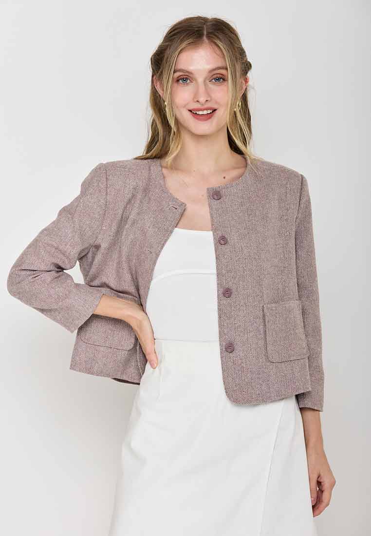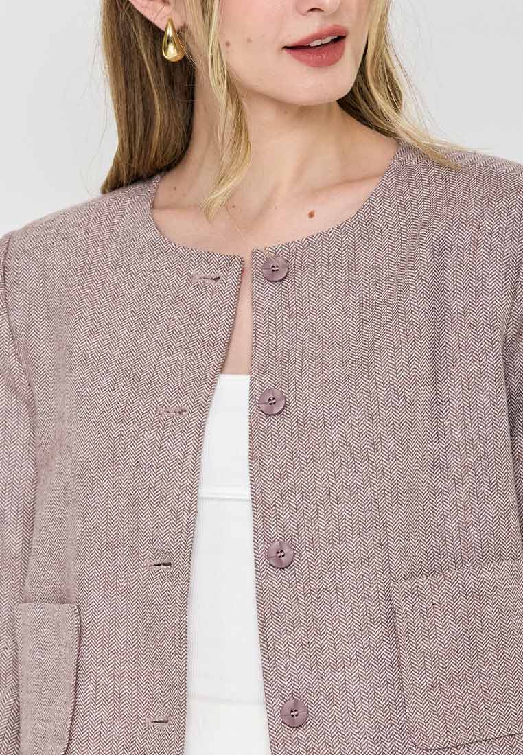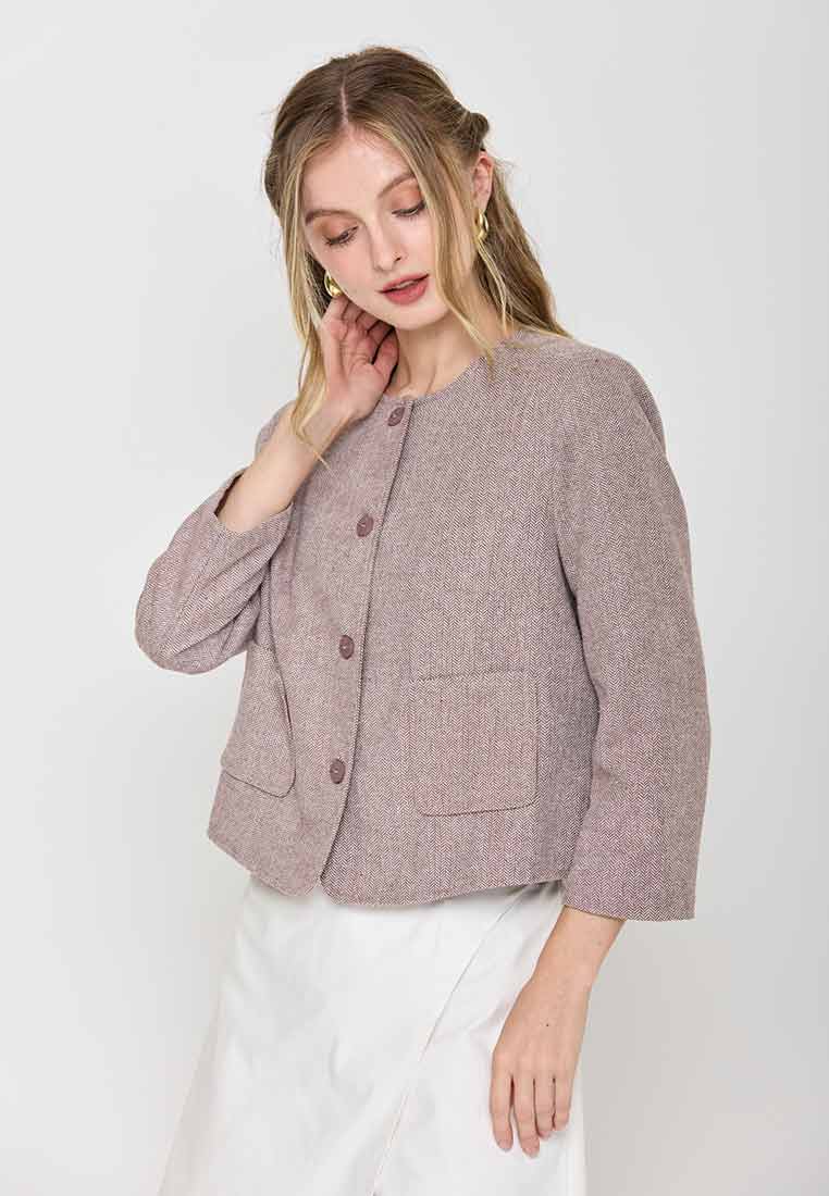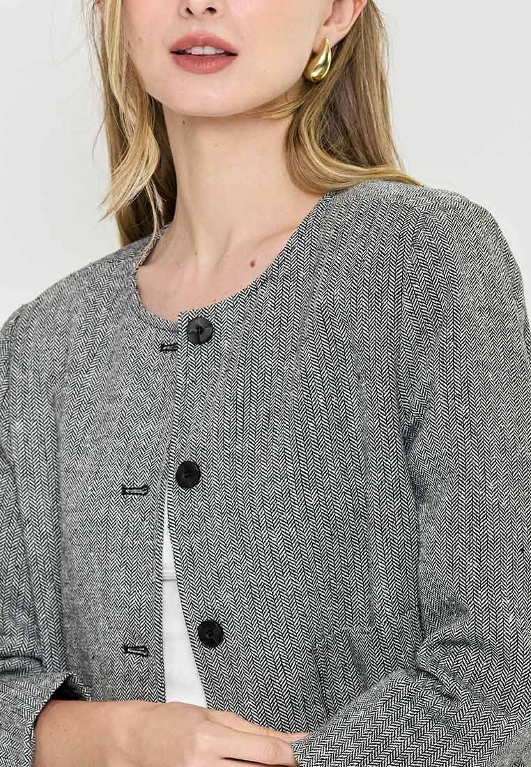 Paperdolls Emerie Button-down Tweed Jacket in Herringbone Print