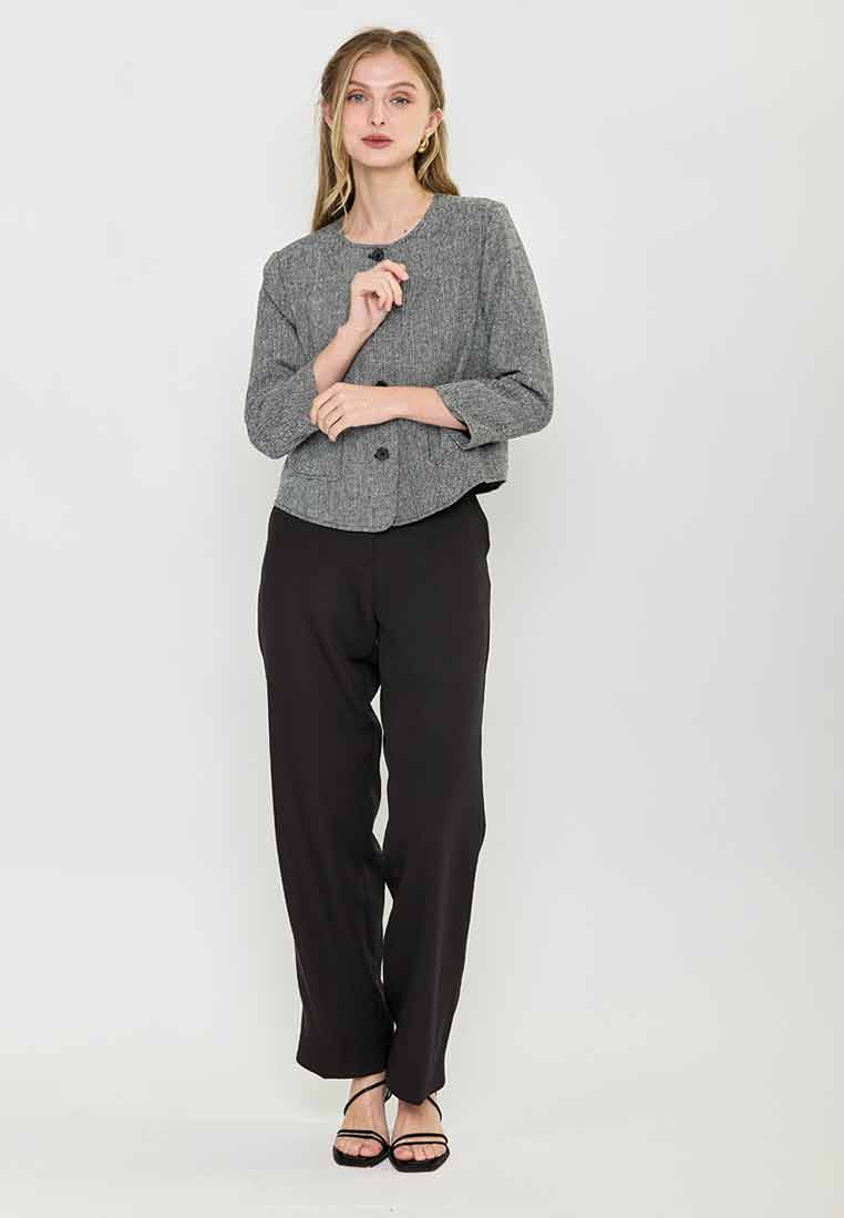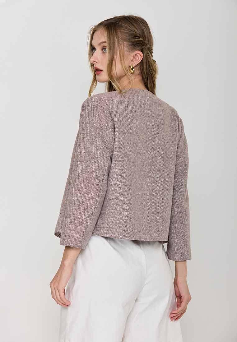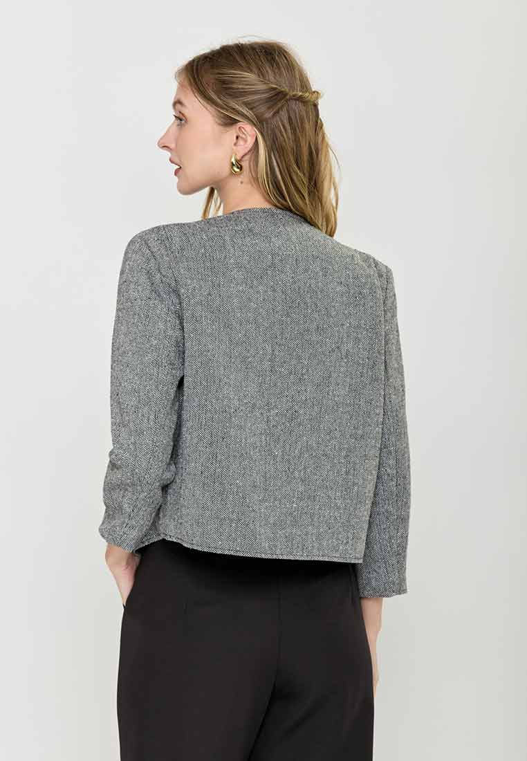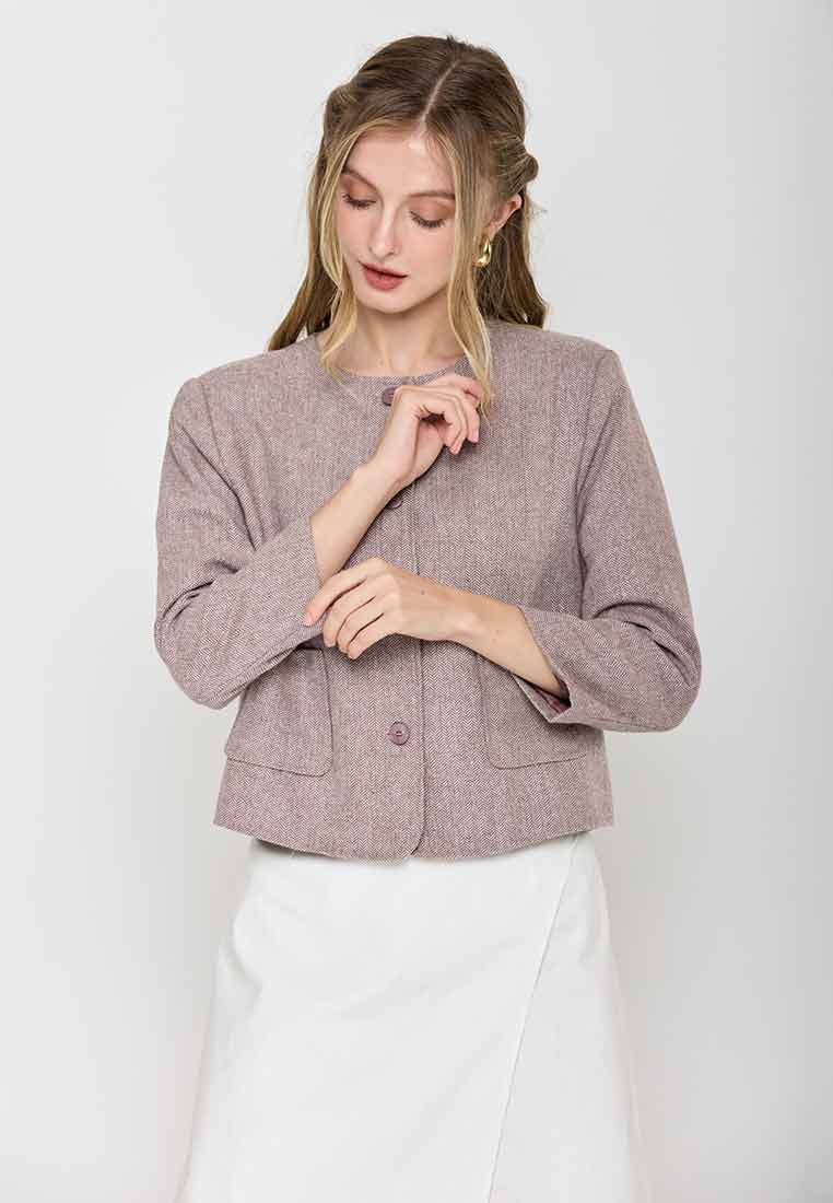 Paperdolls Emerie Button-down Tweed Jacket in Herringbone Print